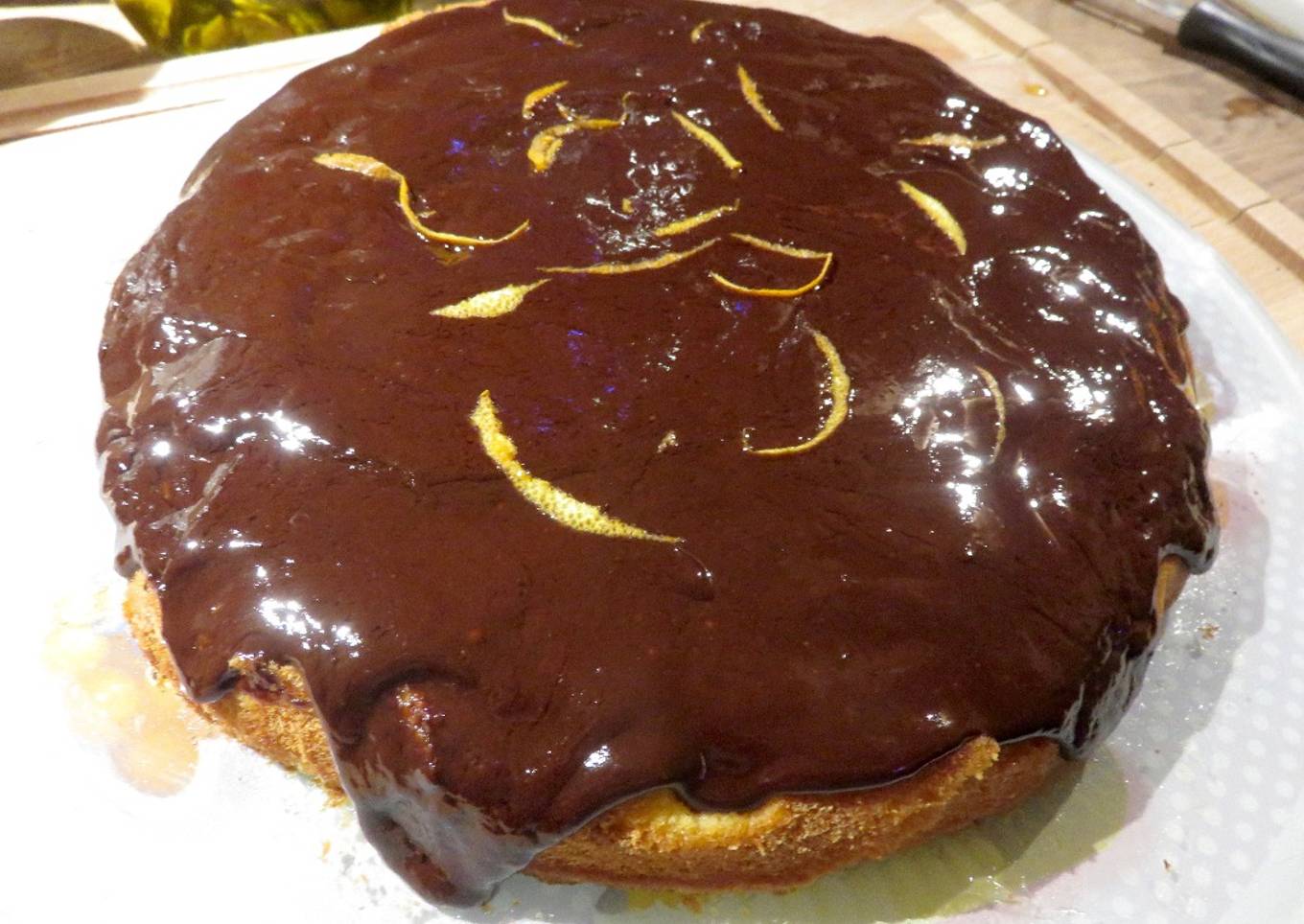 - Pour finir napper le chocolat sur le gâteau et mettre quelques écorces d'oranges pour décorer. Laisser refroidir 1 heure avant de déguster.