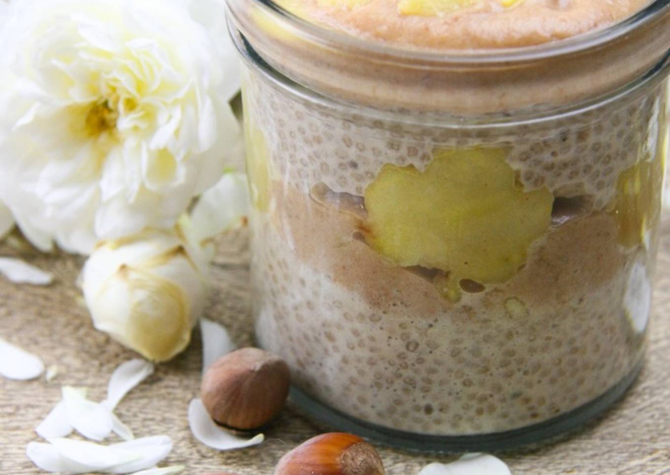 Instructions to make to make Chia pudding aux pommes et caramel de dattes au lucuma