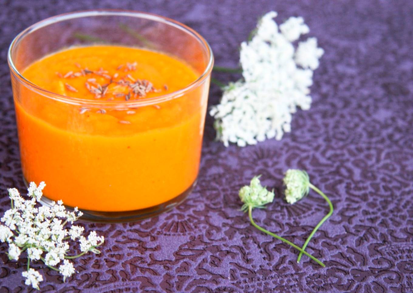 Une superbe recette simple et fraîche pour cette saison. Je n'ai pas osé la nommer "Soupe" car elle est froide et crémeuse, donc cela sera une crème de carottes à l'orange et au cumin.