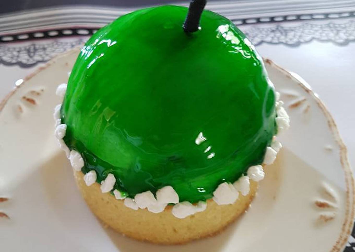 - Le lendemain demouler les spheres, puis melanger du colorant avec avec du nappage neutre, verser le tout sur les spheres et rajouter en pate a sucre la queue de la pomme, au frais pdt 4-6h puis déguster.