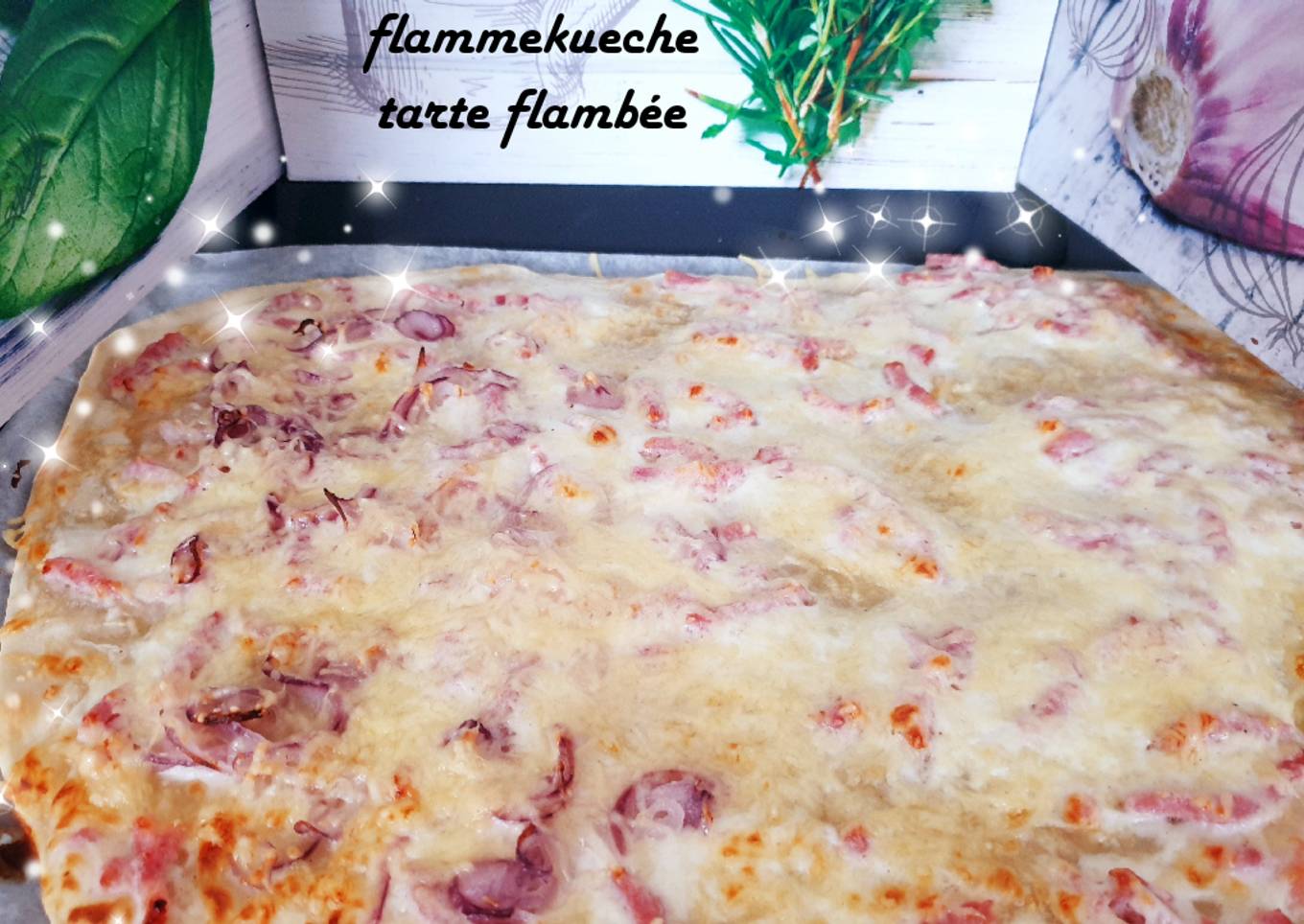 Ici dans le nord on appelle cela une flammekueche où alors aussi une tarte flambée 🥰