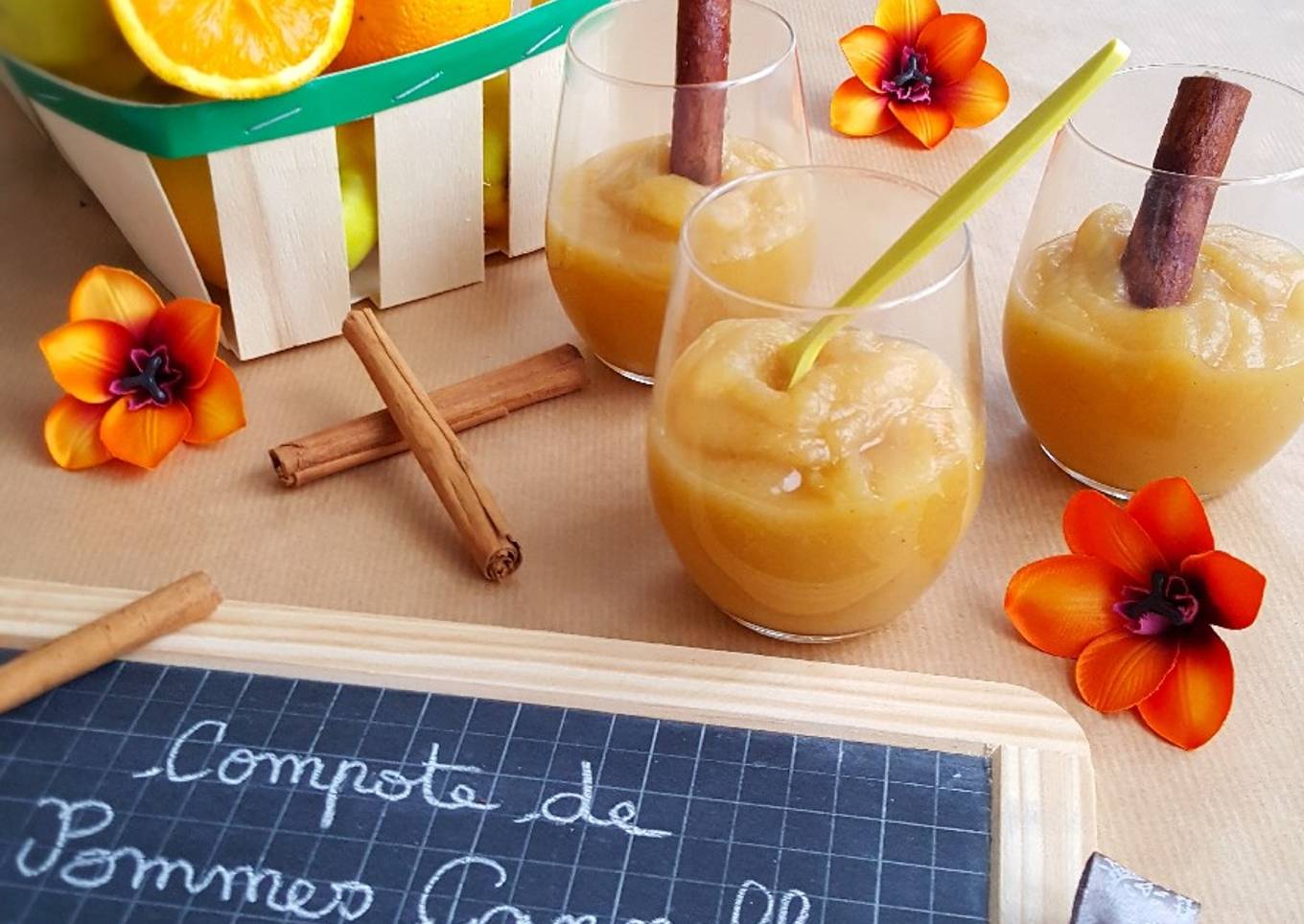 - Une fois les pommes bien compotées, mixer finement au mixeur plongeant, ajouter le jus de l'orange et redonner un coup de mixeur.