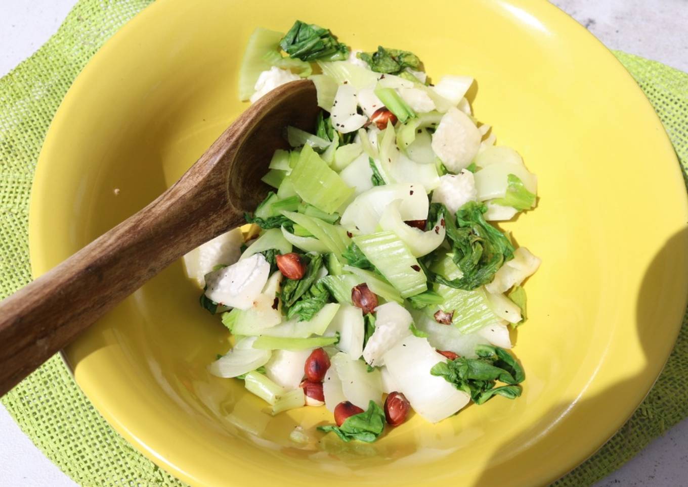 Salade de pak choi (chou chinois) aux cacahuétes et radis noir